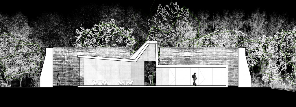 El proyecto integra la reforma del depósito de agua y del parque en el que habita. Se ha mantenido la vegetación del parque, repoblando los vacíos y tratando los extremos del parque como bandas que aíslan del tráfico y del ruido de los alrededores.
