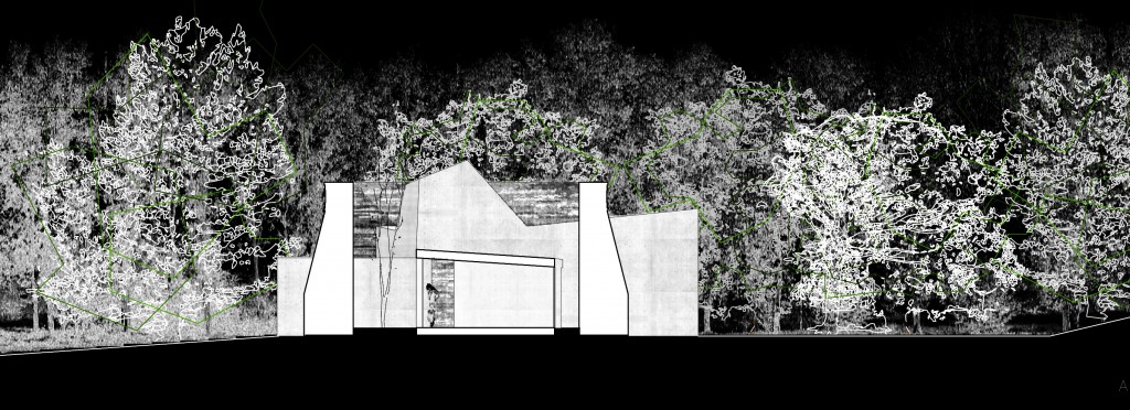 El depósito mantiene su imagen original. Su transformación se centra en una pieza que se posiciona en su interior articulándose en unos patios intermedios a los que se abre el programa. El programa del que hablamos son las taquillas para alquiler de las pistas deportivas, los vestuarios y una pequeña cafetería. La pieza sale del depósito generando dos entradas y volcando parte del programa al exterior (terraza de la cafetería). Las pistas del centro deportivo se sitúan integradas y envueltas por el parque y su vegetación.